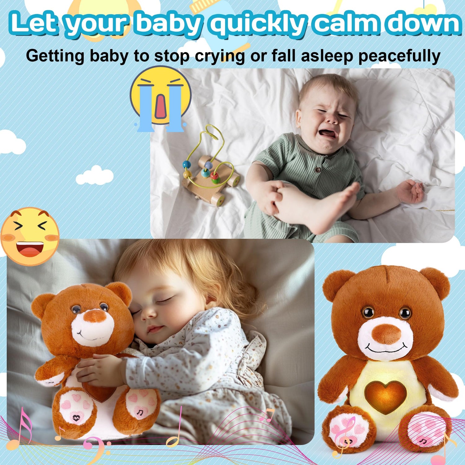 Made to help babies sleep peacefully,cry less and feel lovingly accompanied.